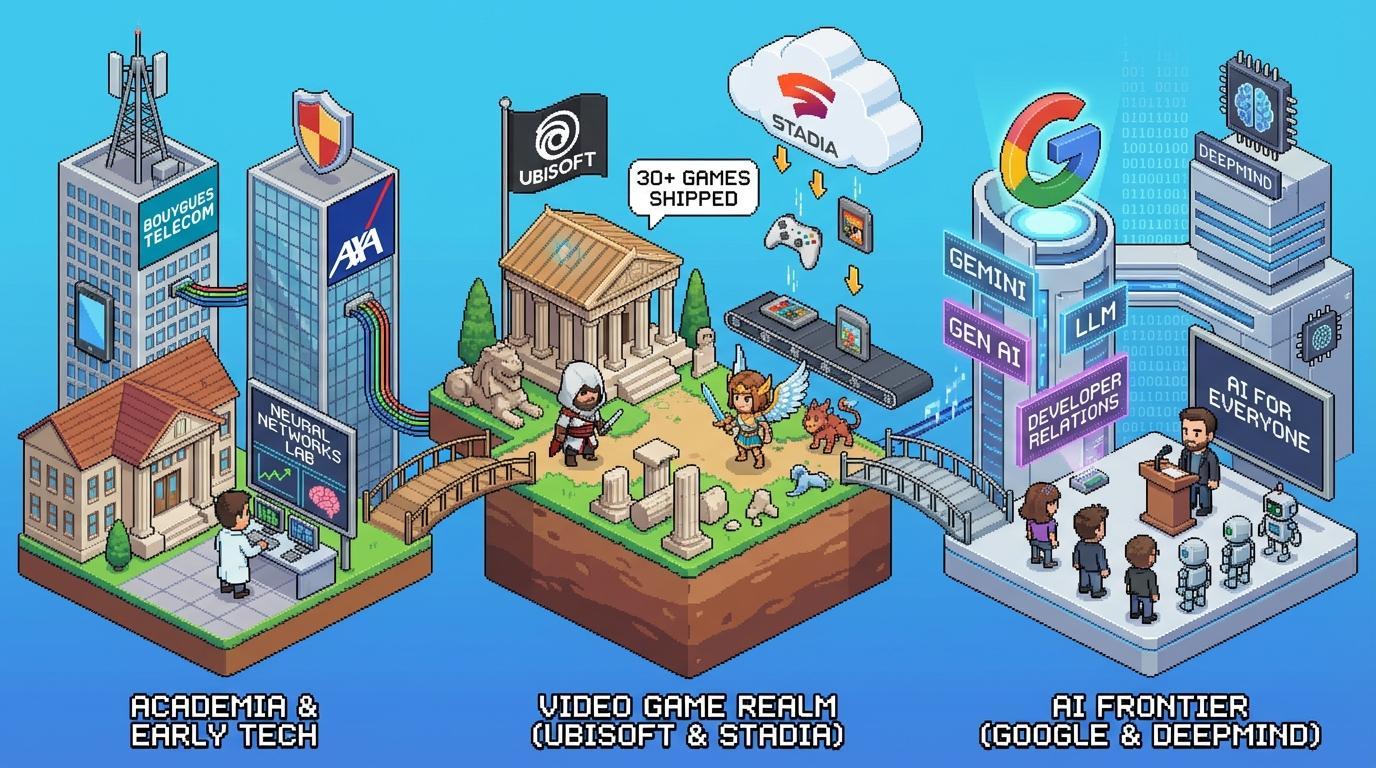Prompt: “Search the web then generate an image of isometric perspective, detailed pixel art that shows the career of Guillaume Vernade” (搜索网络,然后生成一张等轴视角的详细像素艺术图,展示 Guillaume Vernade 的职业生涯)